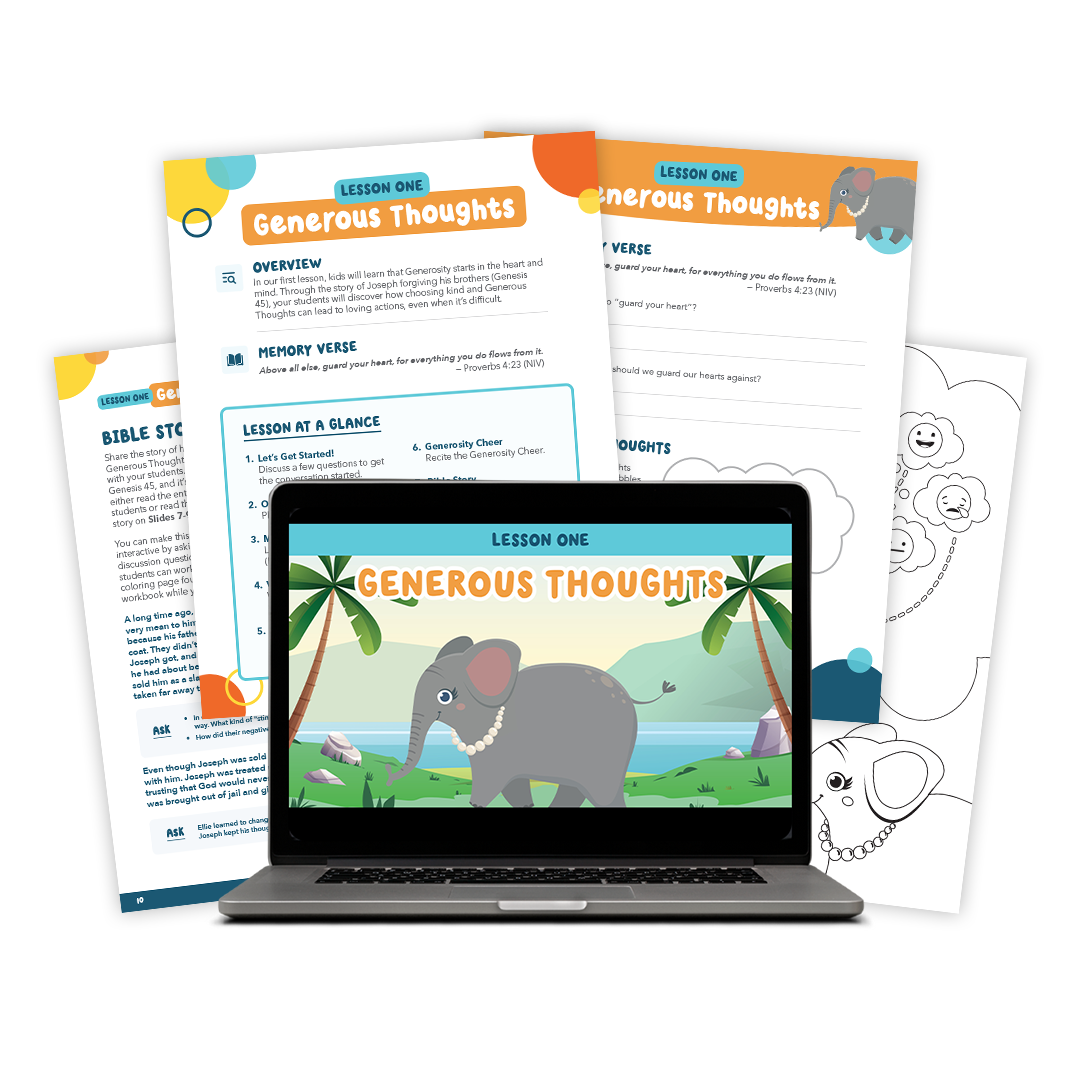 Generous Kids Church Toolkit is an 8-lesson, Bible-based adventure created for Sunday School, kids ministry, and midweek groups.